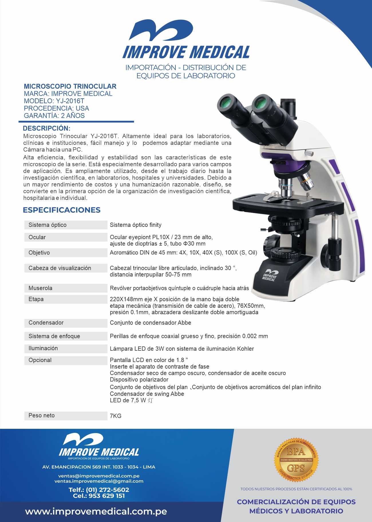 Inicio Equipos de laboratorio Microscopios MICROSCOPIO TRINOCULAR YJ-2016T MICROSCOPIO TRINOCULAR YJ-2016T Categorías: Equipos de laboratorio, Microscopios Descripción Productos relacionados ESTEREOSCOPIO DE PANTALLA LCD – YJ-102TLCD Equipos de laboratorio, MicroscopiosLeer más CENTRIFUGA DE 06 TUBOS – IMPROVE MEDICAL Equipos de laboratorio, CentrífugasLeer más LAVADOR DE MICROPLACAS W206 Equipos de laboratorioLeer más MICROSCOPIO BINOCULAR – YJ-701BN Equipos de laboratorio, MicroscopiosLeer más